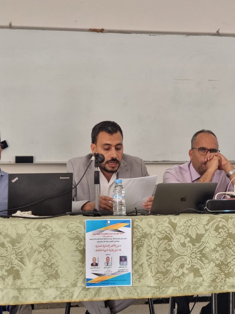 و افتتح اللقاء بكلمة الأستاذ حمدون باسم إدارة المركز،تلتها المداخلة الأولى ذ. العربي الربح وهو مفتش تربوي مكلف بالتربية الدامجة بجهة الدار البيضاء سطات ،بعنوان”الاعاقة بين المفهوم العلمي و التكفل الاجتماعي ” ،ثم مداخلة ثانية للأستاذة رجاء مفقود أستاذة مكونة بالمركز الجهوي لمهن التربية والتكوين بعنوان “مسلك الادارة التربوية و رهان تكوين دامج”، و كانت المداخلة الثالثة للأستاذ عبد الاله مسلم مدير مؤسسة ابن تاشفين، موضوعها “نحو تدبير إداري دامج”، و اختتم اللقاء بمناقشة عامة أغنت اللقاء بمشارك الأطر الإدارية المتدربة بمركز سطات.